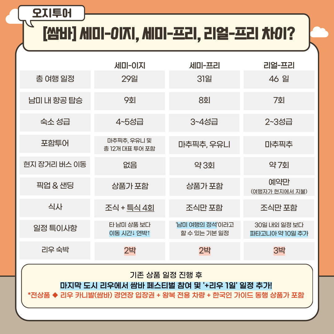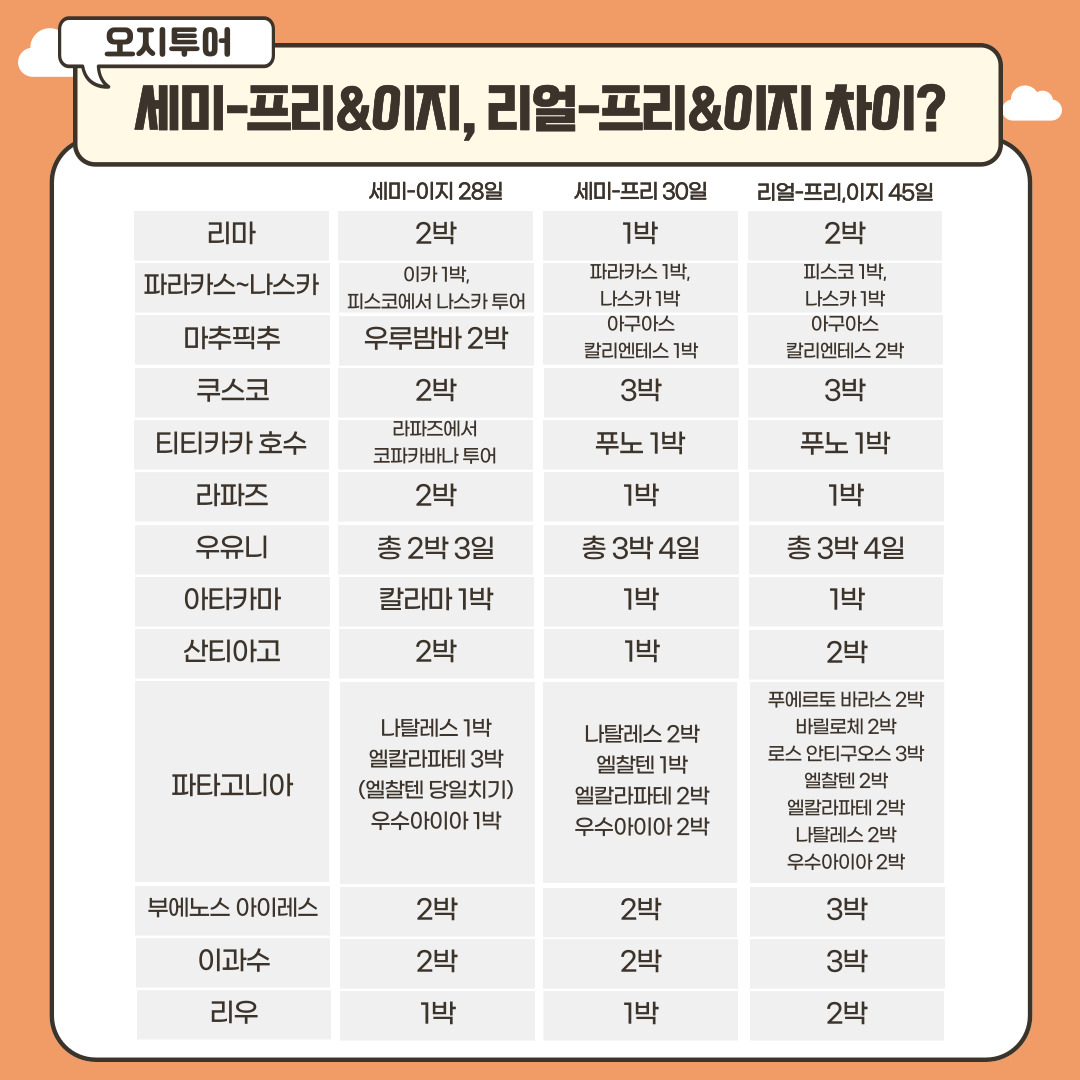 [오지투어] 남미여행 상품 비교 소개