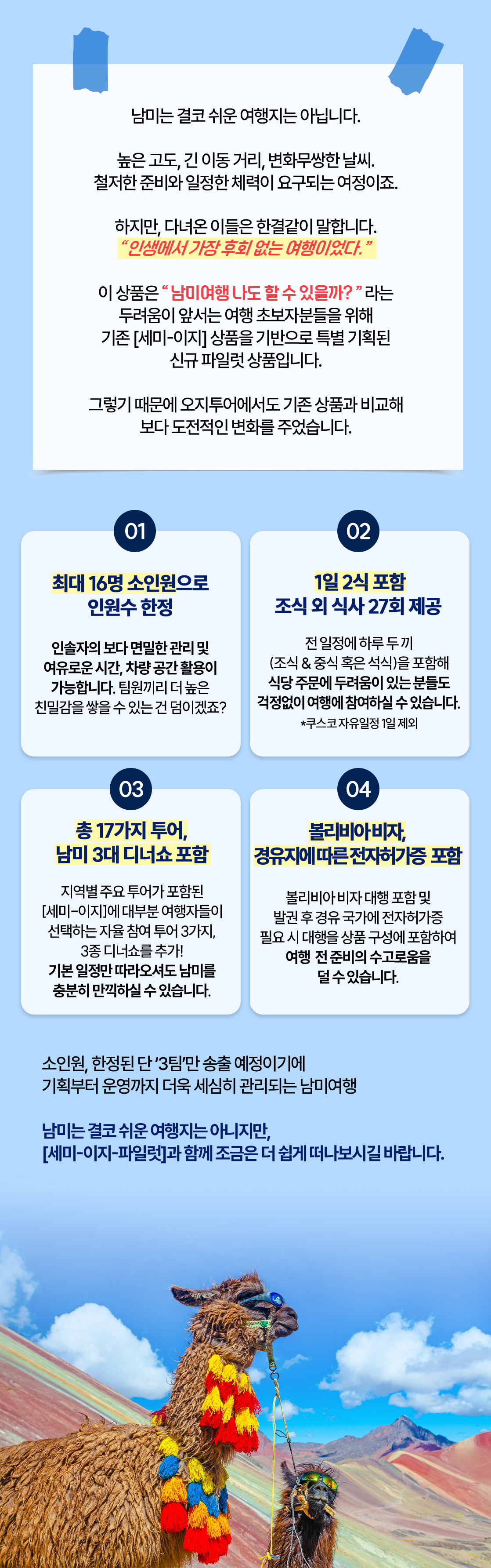 | 제목 | 식사+투어+비자까지 포함된 소그룹 남미여행 | ||