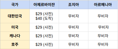 - 아제르바이잔 : 관광 사전 비자 오지투어 발급 대행 (상품가에 포함)