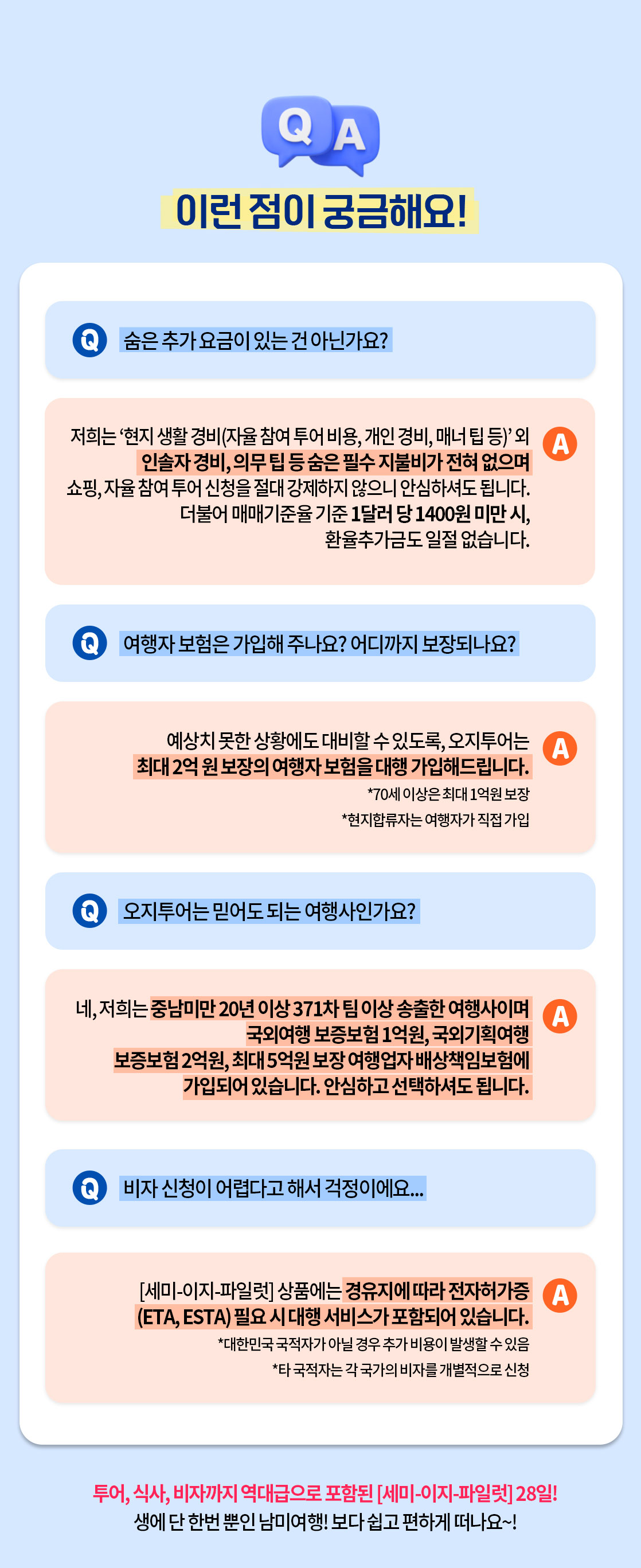 여행 중 인솔자나 현지 가이드에게 매너팁이 아닌 의무적으로 지불해야 하는 팁 등 숨은 비용을 지불할 것 없이, 가져간 여행 경비는 자신만의 여행에 투자하세요!