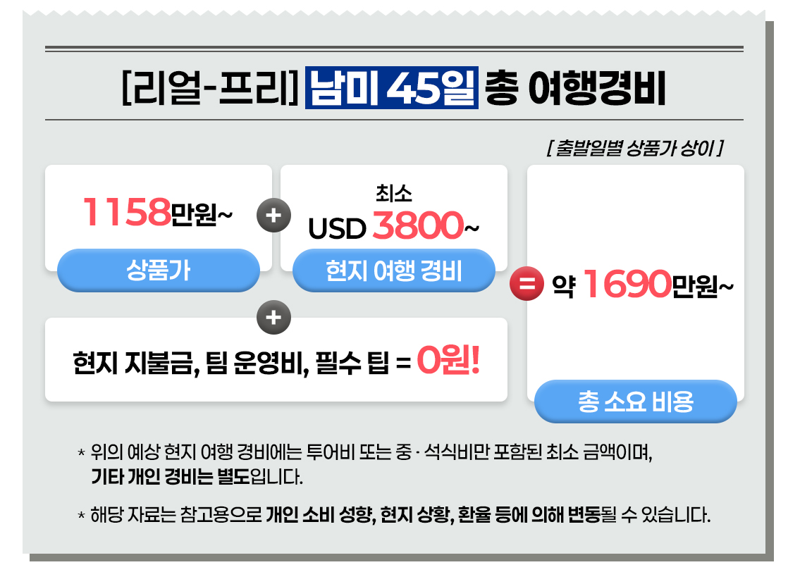 - 금액은 불포함 사항에 안내되어 있습니다.